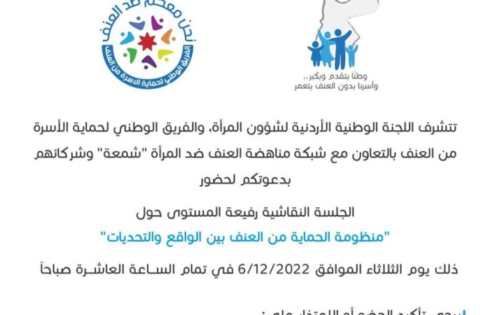 المناظرة الشبابية بعنوان "قانون العقوبات في الاردن ليس برادعٍ لظاهرة العنف الأسري ضد النساء والفتيات" -ينظمه مركز الاميرة بسمة بالتعاون مع الصندوق الاردني الهاشمي للتنمية البشرية جهد واللجنة الوطنية لشؤون المرأة
