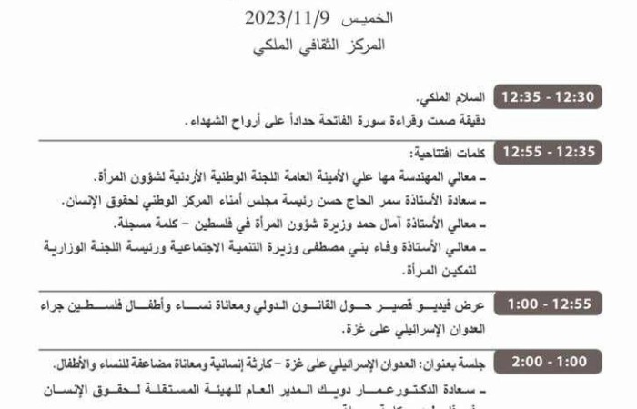 نظمها كرسي عرار بالتعاون مع مركز الأميرة بسمة لدراسات المراة الأردنية