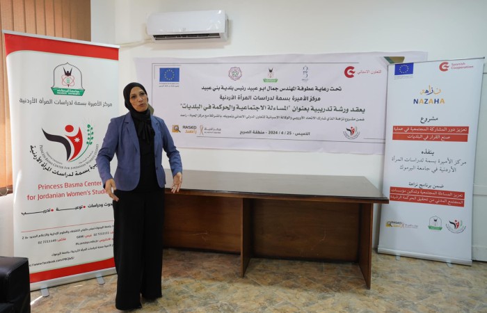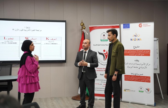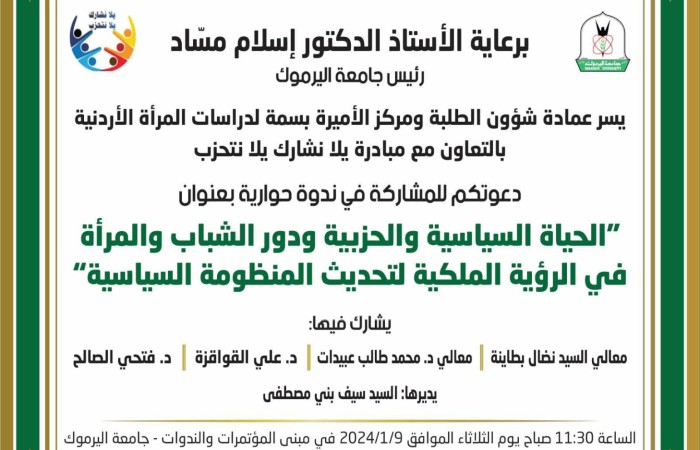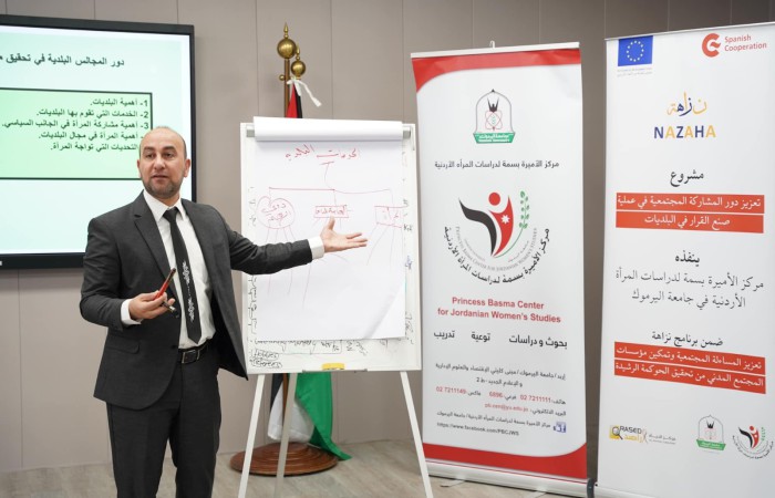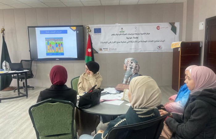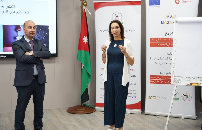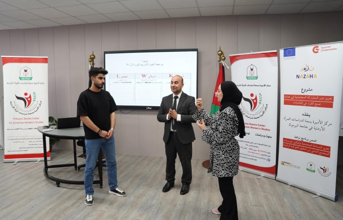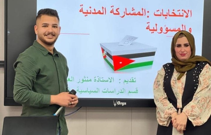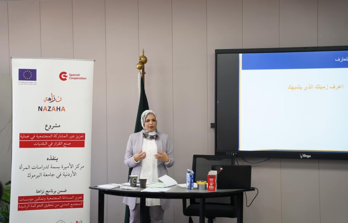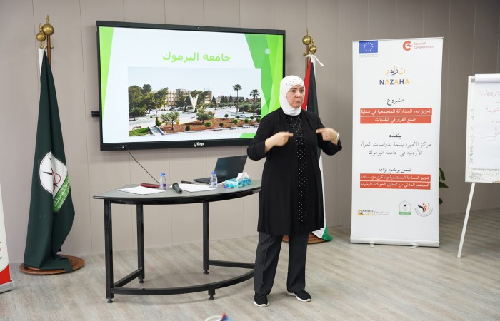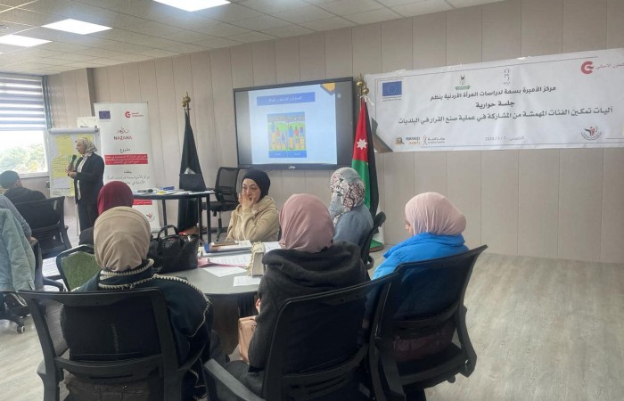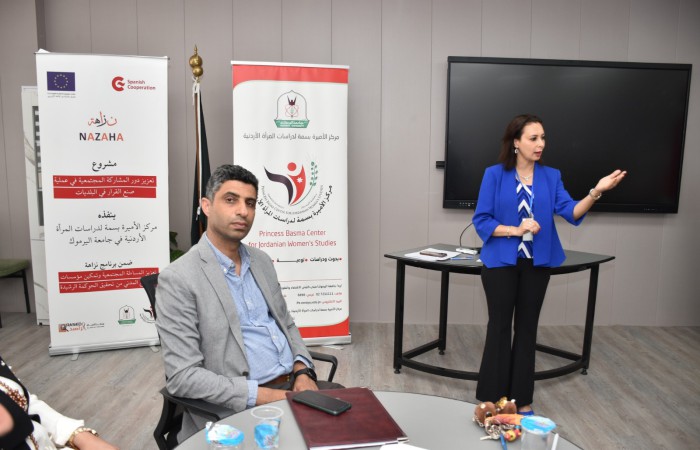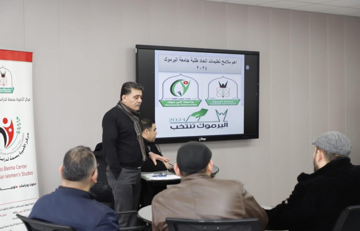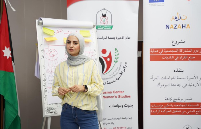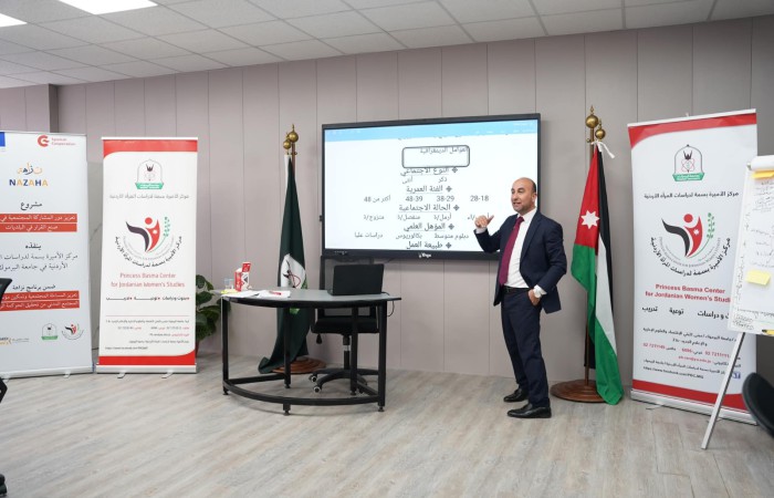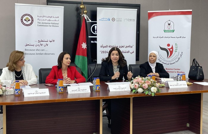 مركز الأميرة بسمة لدراسات المرأة الأردنية/ جامعة اليرمو ك ، ضمن برنامج تعزيز مشاركة المرأة في الانتخابات النيابية، والذي تنفذه اللجنة في كافة المحافظات قُبيل الانتخابات النيابية القادمة لتعزيز معرفة ومهارات السيدات لتعزيز المشاركة السياسية الفاعلة.