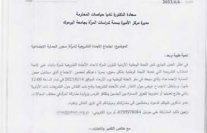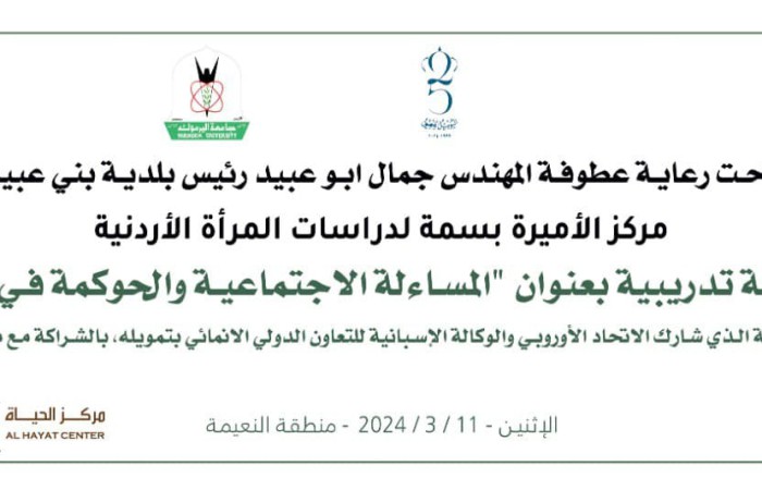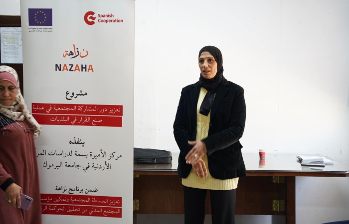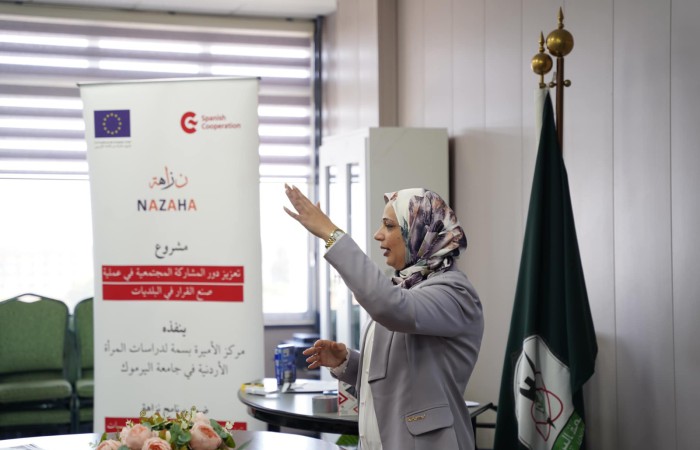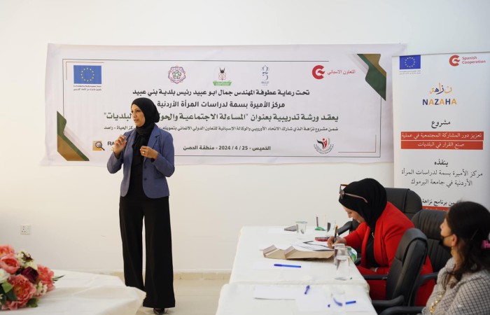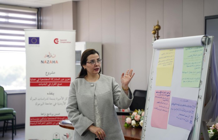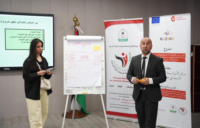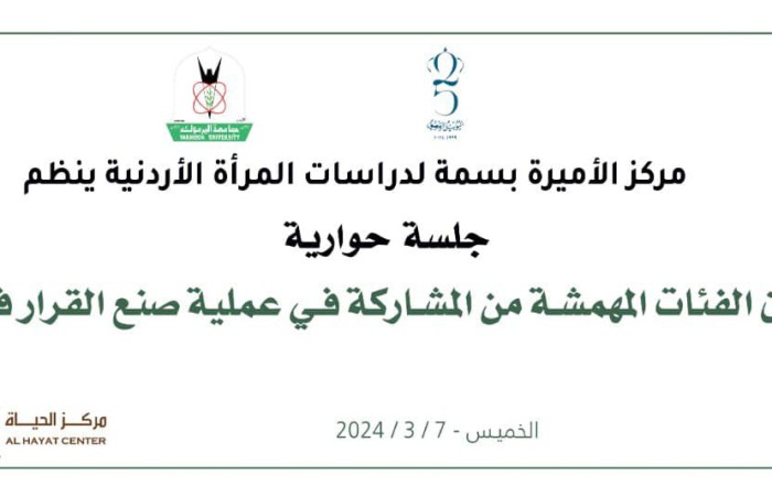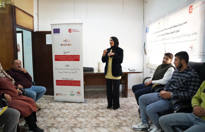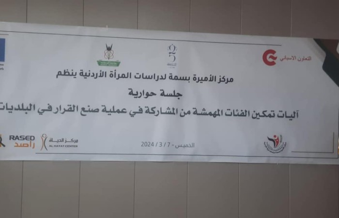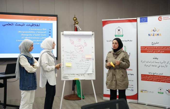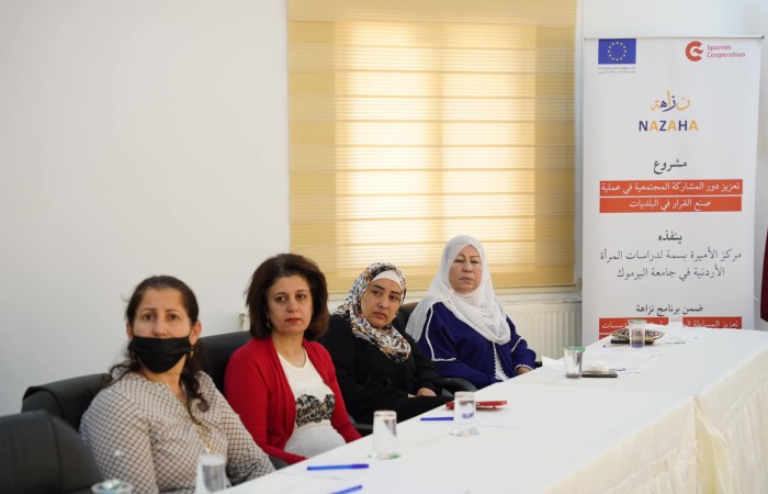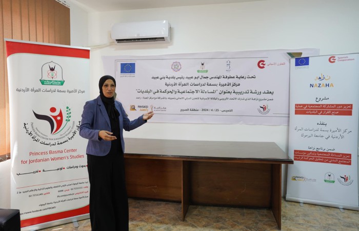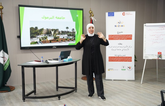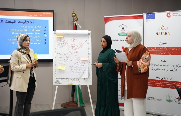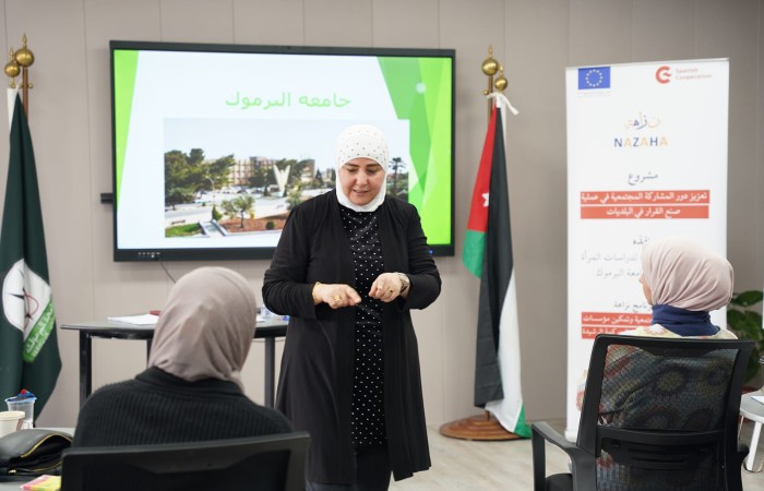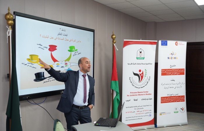 مركز الأميرة بسمة لدراسات المرأة الأردنية/ جامعة اليرمو ك ، ضمن برنامج تعزيز مشاركة المرأة في الانتخابات النيابية، والذي تنفذه اللجنة في كافة المحافظات قُبيل الانتخابات النيابية القادمة لتعزيز معرفة ومهارات السيدات لتعزيز المشاركة السياسية الفاعلة.