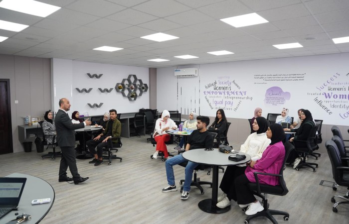 جانب من تدريبات مشروع تمكين المرأة لأدوار القيادة(الإداريات في جامعة اليرموك ) الممول من الحكومة الكندية / منتدى اتحاد الفيدراليات