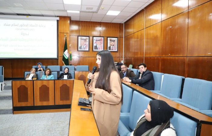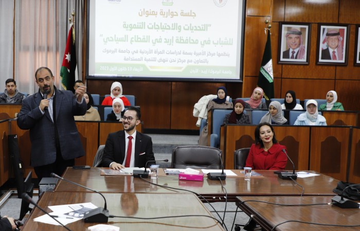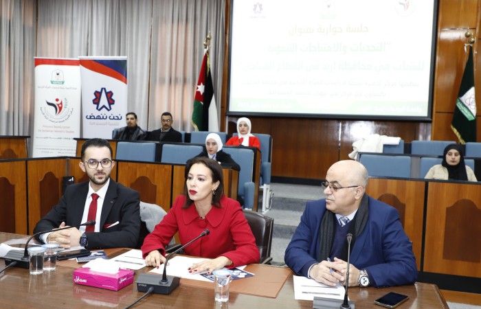 استضافت اللجنة الوطنية الأردنية لشؤون المرأة في جلسة حوارية عقدتها اليوم في محافظة إربد، في مقر مركز الأميرة بسمة لدراسات المرأة الأردنية/ جامعة اليرموك كلًا من سعادة النائب فاطمة أبو عبطة، والدكتورة بتول المحيسن مديرة مركز الأميرة بسمة لدراسات المراة الأردنية، والإعلامية إيمان أبو قاعود، وبحضور نائبة الأمينة العامة للجنة الوطنية الأردنية لشؤون المرأة الدكتورة نسرين السيد. وتهدف الجلسات الحوارية التي تنظمها اللجنة ضمن كل ورشة تدريبية في كل موقع تُقام فيه الورشات، إلى مشاركة المتحدثات البارزات تجاربهن في العمل السياسي والعام والإعلام، والحوار حول آليات مواجهة التحديات في خوض تجربة الترشح.